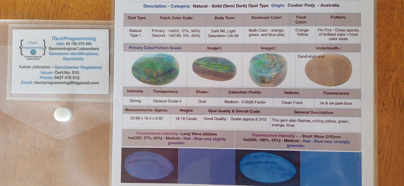 18.19 carat SUPERB Australian Coober Pedy Opal - with Valuation