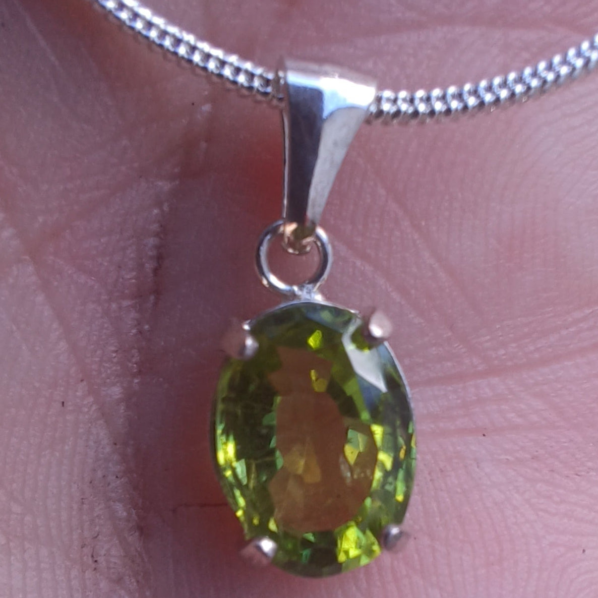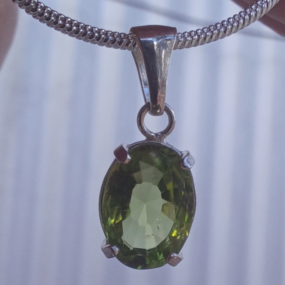 925 Sterling Silver and 2 carat Oval Peridot Pendant