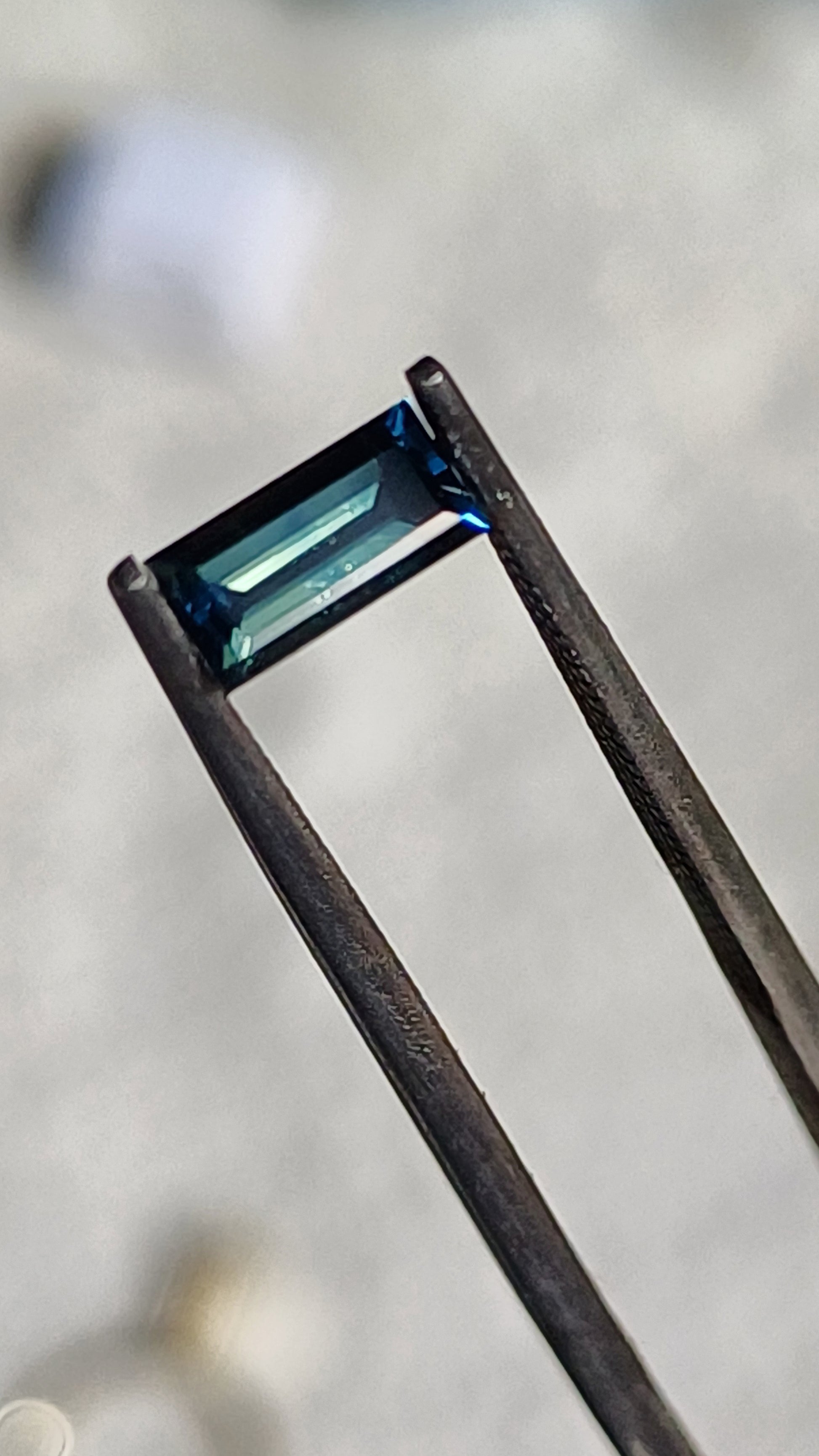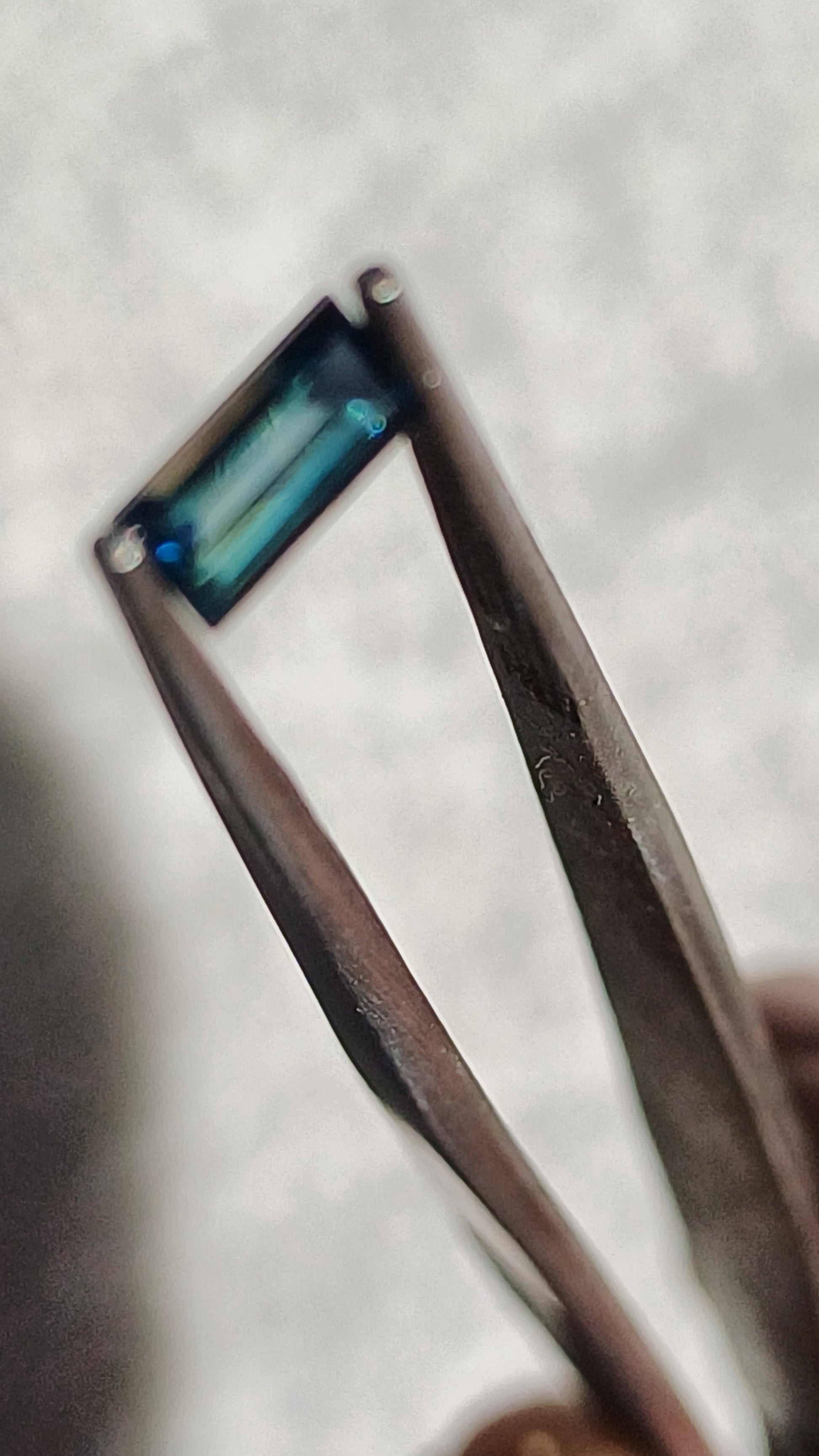 Lovely clear stone with Blue at each end of the Baguette and Green in the middle.