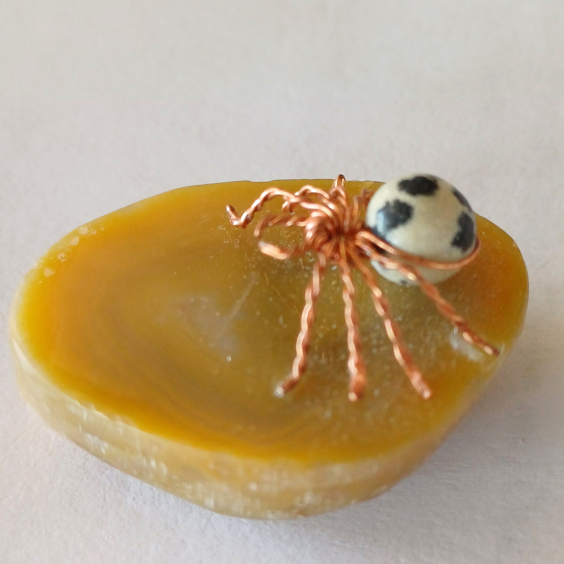 Sitting on a piece of yellow Agate